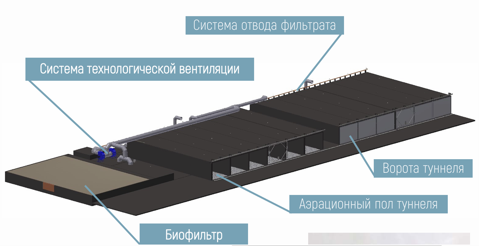 – Органические отходы, которые мы отделим на сортировке, будут помещаться в специальные герметичные туннели из железобетона. Это полностью автоматизированный процесс. Каждый туннель — это, по сути, «умный биореактор». Снизу, через аэрационный пол с сотнями форсунок, подается воздух, насыщая сырье кислородом. Система вентиляции поддерживает нужную температуру и удаляет избыточное тепло. Вся влага, которая выделяется в процессе — фильтрат — не уходит в землю, а собирается, очищается и снова используется для поддержания оптимальной влажности. Это замкнутый цикл.